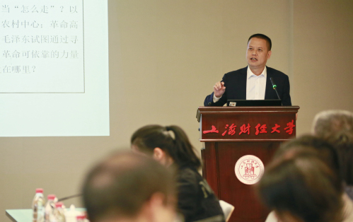 党委常委、宣传部部长、马克思主义学院院长章益国以百年党史为坐标介绍了寻乌调查、兴国调查、和合调查以及陈云的青浦调查在党史上的重要意义,这也是今天邀请这几位地方党校和纪念馆专家走进高校主题教育读书班的缘由。