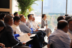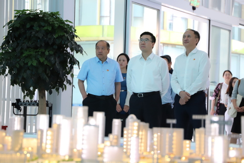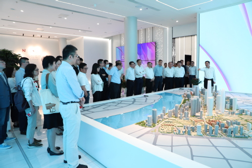 北外滩地处“一江一河”交汇处,与陆家嘴、外滩隔水相望,尽享浦江两岸世纪同框,是上海“黄金三角”重要一角。虹口区领导与调研组共同参观了数字北外滩展示馆,该馆围绕北外滩的城市规划发展脉络展开,以“会见·连接”为主题,向观众全面呈现“上海北外滩、浦江金三角”的国际化城市形象。在工作人员的讲解下,调研组俯瞰北外滩规划模型,观看规划展示片,体验数字化CIM场景,沉浸式感受十年后的北外滩。