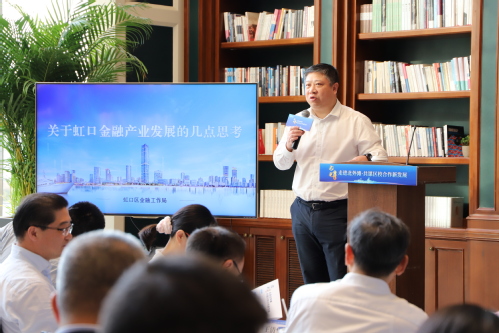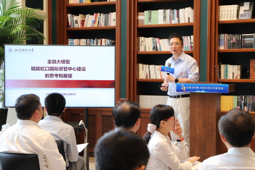 活动邀请虹口区金融工作局局长李骥和学校信息管理与工程学院院长黄海量作交流分享。李骥作《关于虹口金融产业发展的几点思考》主题报告,从虹口金融特点与优势、产业发展思路两个方面分享了虹口区紧抓北外滩“人、时、势”,在发挥资产管理领域特色优势,助力打造上海国际金融中心“升级版”所做出的重要贡献和工作思考。黄海量作《金融大模型赋能虹口国际资管中心建设的思考与展望》,从金融资管行业数智化转型趋势切入,以学校科研团队研发的Finchat为例,对学校科研成果转化赋能并优化产业生态提出建设性思考。