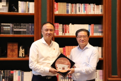 许涛代表学校向虹口区委统战部、区金融局和建投书店投资有限公司赠送上财文宣品。
