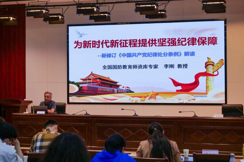 李刚教授主要从修订背景、修订内容以及修订特点三方面对新修订的《条例》做深入解读。首先,他从全面从严治党的新思想、实践经验、作风建设实践中发现的新情况以及《条例》本身从立法技术层面的完善等方面,深刻剖析了《条例》的修订背景。在修订内容方面,系统梳理了《条例》修订的总体情况,结合总则、分则、附则三个篇章依次介绍了《条例》的主要内容,重点解析了16种新增加的应受纪律处分的情况。在此基础上,概括了此次《条例》修订的四个特点:一是进一步突出政治纪律和政治规矩的地位;二是进一步加强对党员的全方位管理和经常性监督;三是注重发挥《条例》对党员干部的激励和保护;四是坚持党性党风党纪一起抓。在讲解过程中,李刚教授还列举了历史上和近年来大量反面典型案例,帮助各位学员加深理解。最后,他呼吁各位学员,作为党员干部,要始终牢记“法纪是块铁,谁碰谁流血;纪律是块钢,谁碰谁受伤”的警示,慎独慎微,手握戒尺,强化对党纪法规的敬畏之心,始终做到不踩“红线”、不越“底线”、不碰“高压线”。