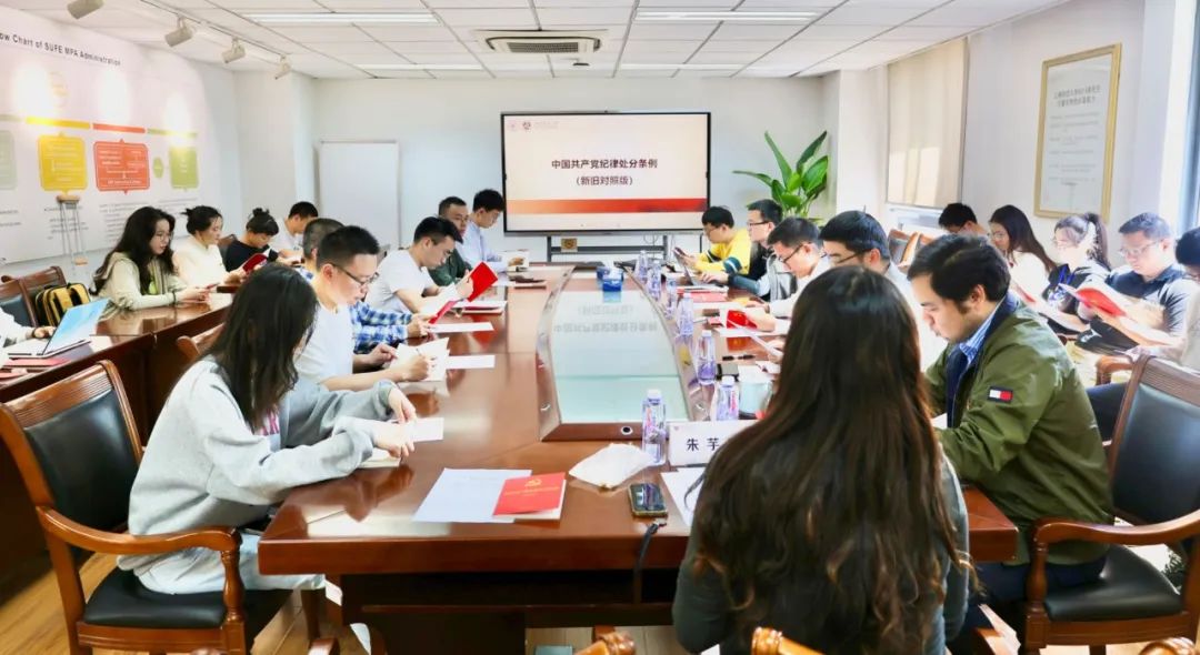 为深入贯彻落实全面从严治党要求,增强广大党员干部纪律意识,引导党员干部明纪法、守底线,切实把党规党纪内化于心、外化于行,5月10日上午,“财政与国家治理”黄大年式教师团队师生党支部在凤凰楼202会议室开展支部书记讲纪律党课专题学习,支部师生共同学习领会新修订的《中国共产党纪律处分条例》。