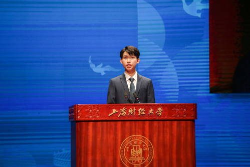 经百年未有之大变局,立数字经济时代潮头。数字经济系2024级本科生孙睿泽作为本科生代表发言。浓厚的历史底蕴和学术氛围、锐意进取的师资队伍和创新平台夯实着上财人全面发展的基础,“厚德博学,经济匡时”的校训精神指引着每一位上财学子走向星辰大海。他表示,在未来的学习生活中,要认真学习专业知识,铸就能力与素养的基石;锤炼意志品质,以乐观心态拥抱挑战;心怀报国赤子之心,以自强不息实现国家富强和民族复兴。