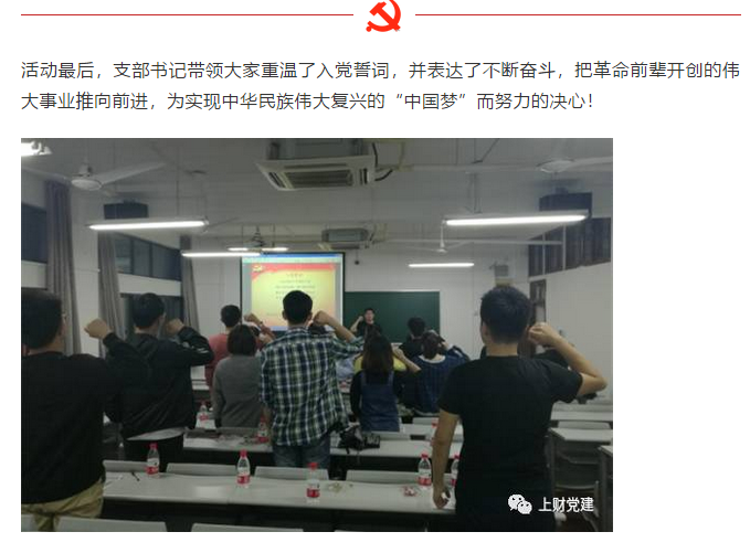 主题党日活动是推进“两学一做”学习教育常态化制度化、加强党支部建设和党员教育管理的有效形式。下面请看统计与管理学院2016级应用统计硕士党支部开展的主题党日活动。